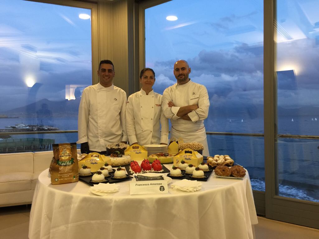 La pasticciera di Palazzo Pterucci,  Sara Sciotti, ha presentato in anteprima il suo “Roccocò2017”, mentre dalle cucine stellate de La Torre del Saracino di Gennaro Esposito, Carmine Di Donna,  ha portato una Vellutata di nocciola con soffice di castagne e cachi. Il veterano Sabatino Sirica, della “Pasticceria Sirica” di San Giorgio a Cremano, ha proposto una carrellata dei classici partenopei: roccocò, susamielli, struffoli. Tra i rappresentanti delle nuove leve, invece, c’erano Marco Infante, della pasticceria “Leopoldo 1940”, che si è scatenato con le cassatine al profumo di pastiera, il buccacciello al babà con crema di cassata e una sbriciolata di roccocò e Francesco Amoroso, del popolarissimo “Chalet Ciro” di Mergellina, che recentemente ha inaugurato una sede a Londra, nell’esclusivo distretto di Chelsea. Lui ha proposto una selezione delle specialità tradizionali. Ancora, Mario Di Costanzo, pastry chef e maitre chocolatier della “Di Costanzo Patisserie”, con laboratori e punto vendita in Piazza Cavour, ha preparato una cassata napoletana nera.  Al suo tavolo c’erano anche gli ultimi nati, i Bon Bon. Accanto alle postazioni dei maestri pasticceri, c’era un banco d’assaggio a cura dell’Associazione Italiana Sommelier Delegazione di Napoli, coordinato da Tommaso Luongo, con in degustazione: Marsala Liquoroso Bio, Zibibbo Liquoroso Bio e Moscato Pantelleria naturale delle  Cantine Pellegrino 1880.