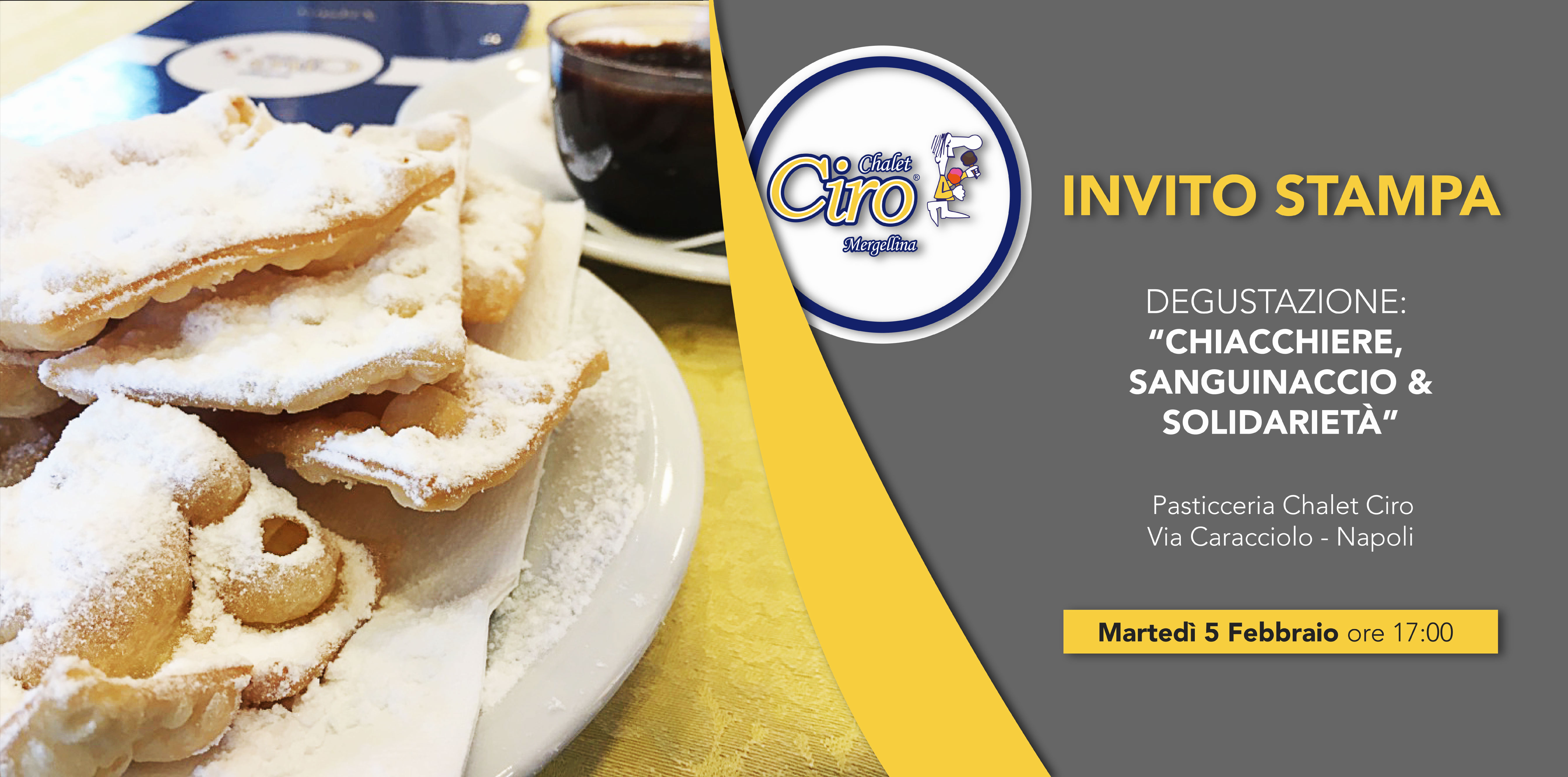 NAPOLI – Metti in tavola una doppia crema al cioccolato fondente aromatizzata alla cannella, servita con cubetti di scorze di arancia candita e gocce di cioccolato, morbidi e leggerissimi savoiardi, croccanti chiacchiere spolverate di zucchero a velo e il lungomare di Mergellina, ai piedi di Posillipo e il Vesuvio come cornice di sfondo. È odore di tradizione da Chalet Ciro, una delle più antiche pasticcerie di Napoli e punto di riferimento per l’arte dolciaria partenopea, dove nel laboratorio della pasticceria già da giorni bolle in pentola uno squisito sanguinaccio e dominano profumi inebrianti di fritto e peccati di gola in attesa della festa di Carnevale. È la storia di una generazione di famiglia, quella di Antonio De Martino, da oltre quarant’anni a capo dello Chalet Ciro a Napoli che, in occasione di una degustazione riservata alla stampa, ospita una delegazione di Oikos comunità familiare per lanciare un appello al gran cuore dei napoletani a favore di una raccolta fondi, identificata con l’hashtag #accompagniamoli e supportata dalla piattaforma di crowdfunding sociale Meridonare, per l’acquisto di un minivan per il trasporto a scuola. La casa famiglia Oikos, situata nel cuore della periferia ovest di Napoli, dal 1998 ospita bambini di età compresa tra i 4 e i 13 anni che provengono da contesti e situazioni difficili per offrire loro un tetto, il riparo e le cure necessarie per ritrovare il sorriso. In poche parole: una famiglia.